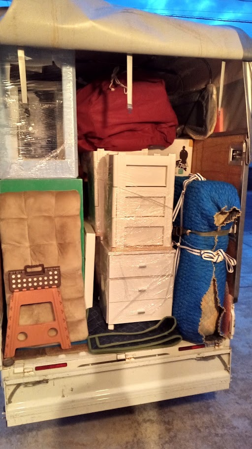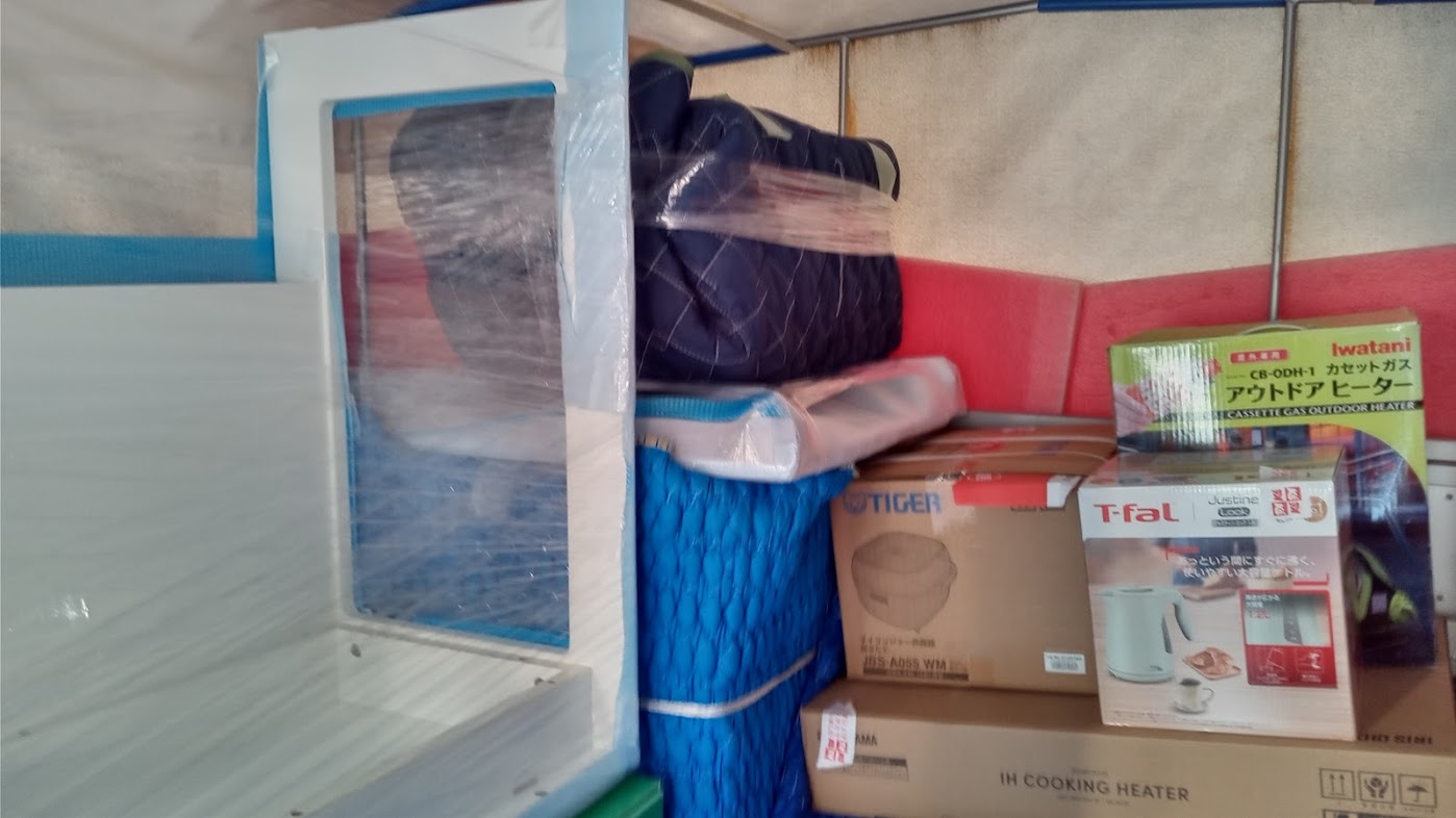 無事、難関の冷蔵庫、洗濯機、ベッドマットレスが積みこまれました。